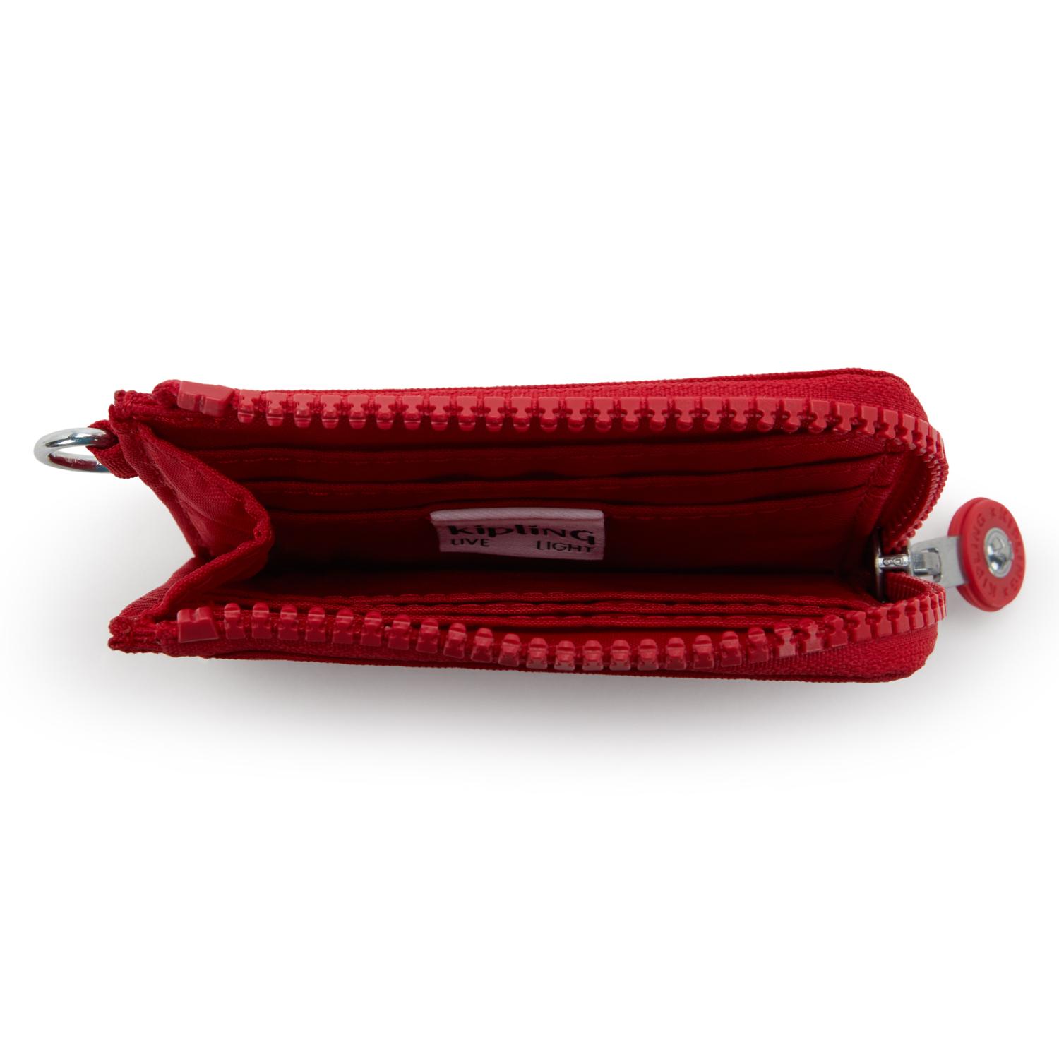 Cartera pequeña con ranuras para tarjetas y compartimento interior con cremallera para monedas y más tarjetas.
