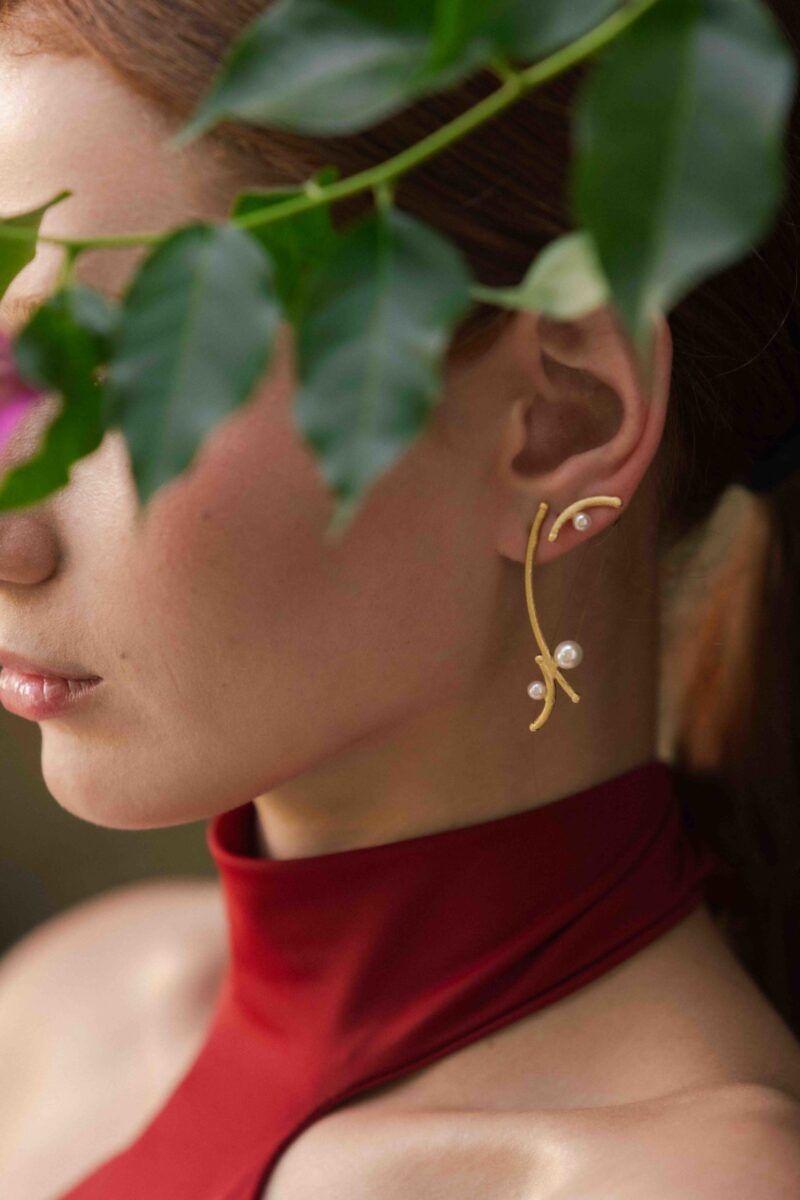 Pendiente doble diseñado en Mallorca, con acabado artesanal y baño en oro de 18k. Combina dos perlas —una pequeña y otra más grande— que aportan equilibrio y elegancia con un toque contemporáneo.