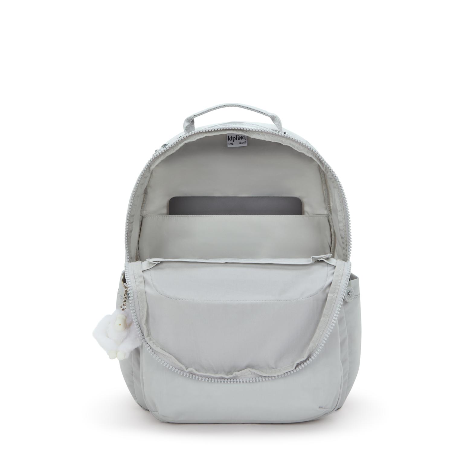 Mochila grande organizada y con muchos compartimentos para distribuir todas tus cosas, ya sea para viajar, para momentos de ocio, o también para trabajar o estudiar. Capacidad para una carpeta grande, separador para portátil en su interior, y bolsillo grande exterior donde tener a mano lo más imprescindible. Su espacio interior es amplio y se adaptará a tus necesidades a cada momento. Dispone también de pequeñas cremalleras donde guardar la tarjeta de transporte, las baterías para móvil, u otras cosas de pequeñas dimensiones.