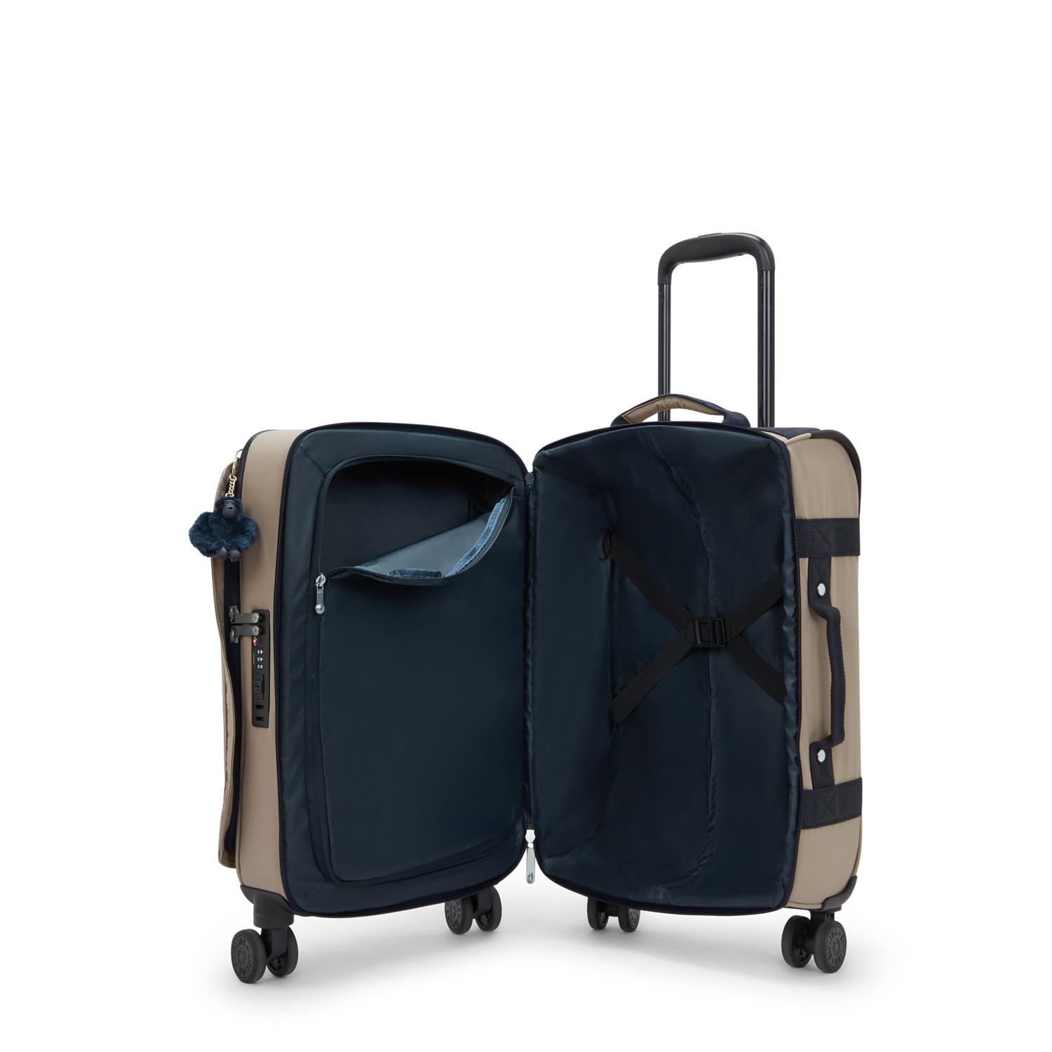 Maleta pequeña de formato vertical con cuatro ruedas. Tamaño ideal para fines de semana o pequeñas escapadas, y también para usar de maleta de mano en viajes más largos. Estructura semirrígida y muy ligera. Tiene dos cremalleras principales que quedan totalmente cerradas gracias al candado TSA integrado en la misma maleta. Muy buena distribución para organizar bien todas tus cosas, con malla interior para cosas más pequeñas.