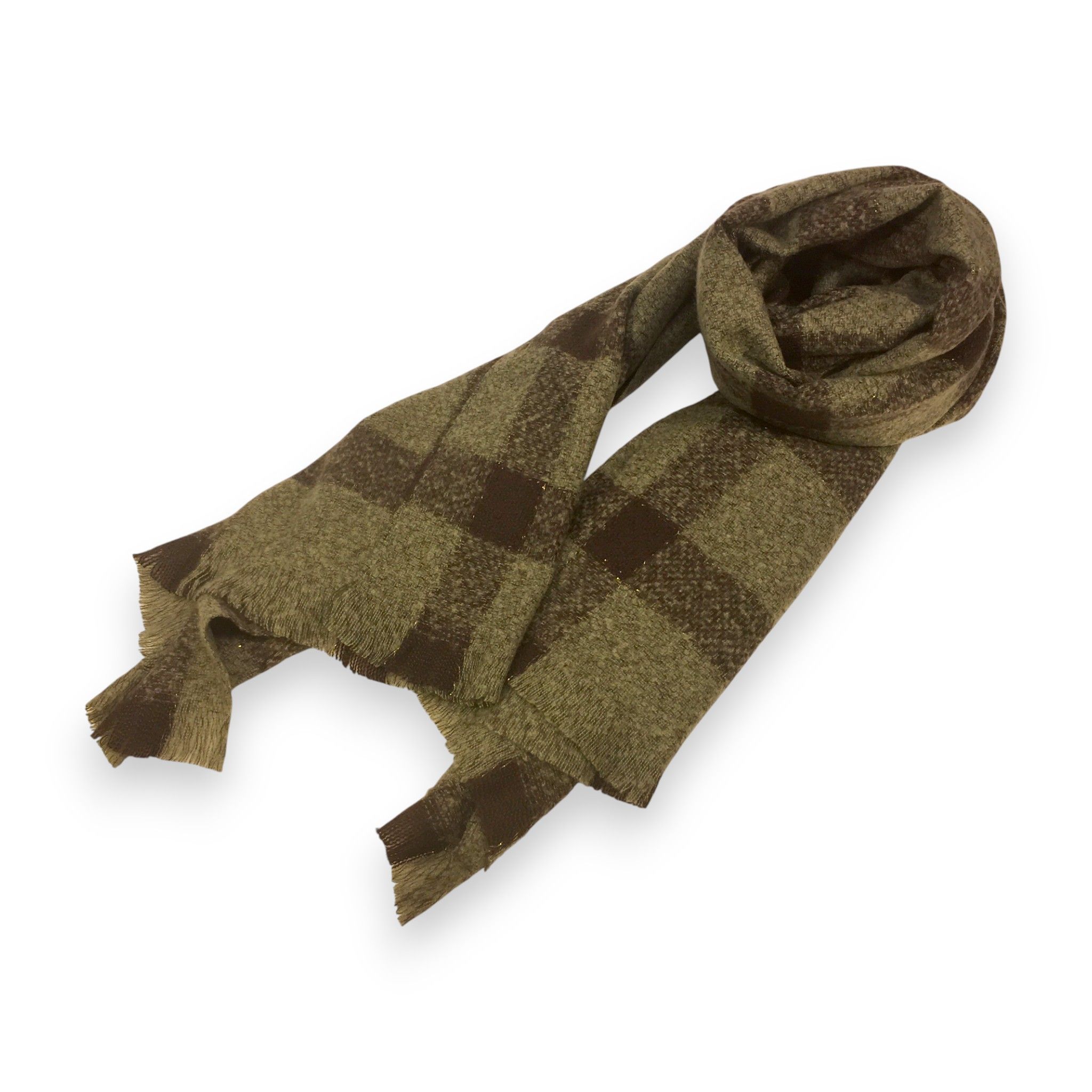 Aposta per la calidesa i l’estil atemporal amb la nostra bufanda d’estampat a quadres en tons gris, marró i beix.