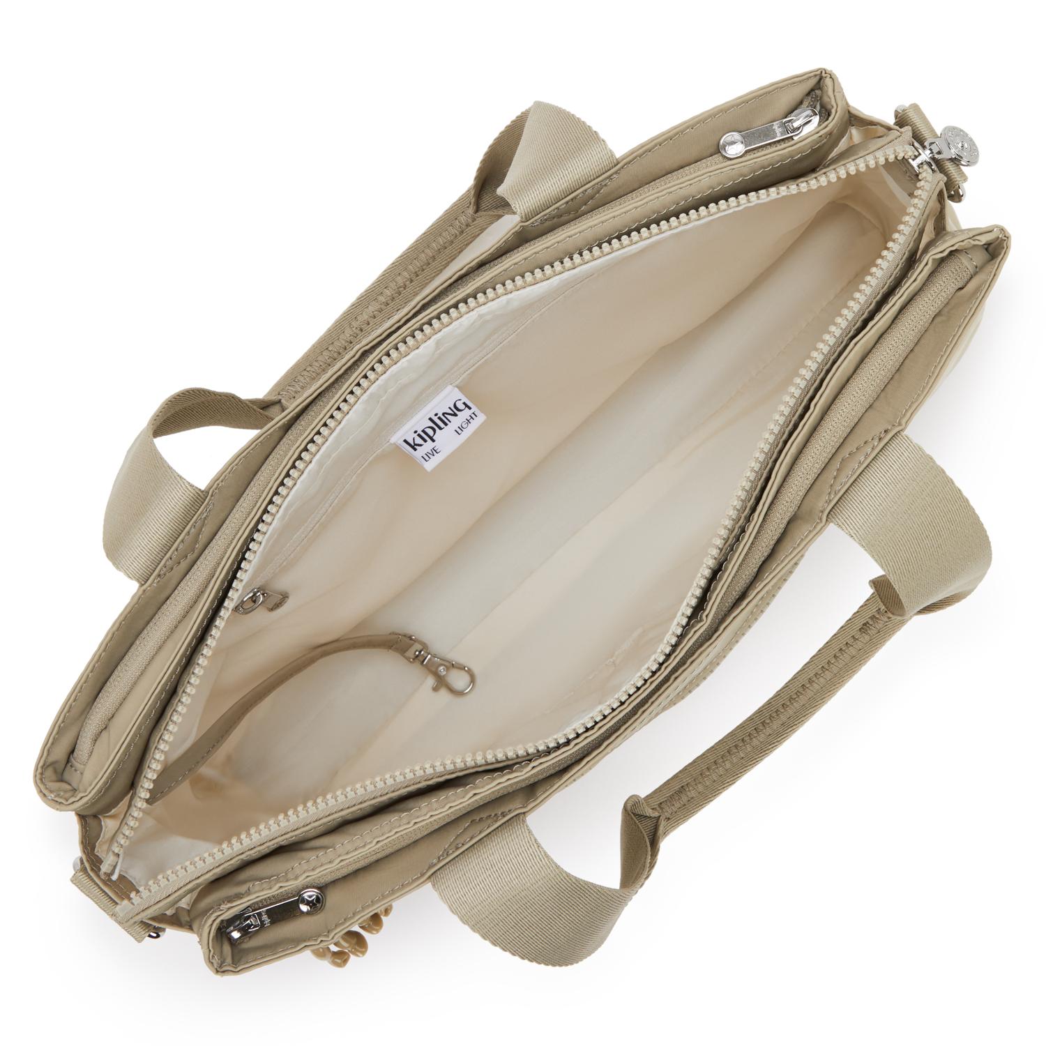 Disposa de dues butxaques laterals amb cremallera per tenir a mà petits objectes o documents addicionals. Les nanses llargues permeten portar-la còmodament a l’espatlla, i la corretja extraïble t’ofereix l’opció de portar-la com a bandolera. A més, incorpora una cinta al darrere per acoblar-la fàcilment a la maleta quan viatges.