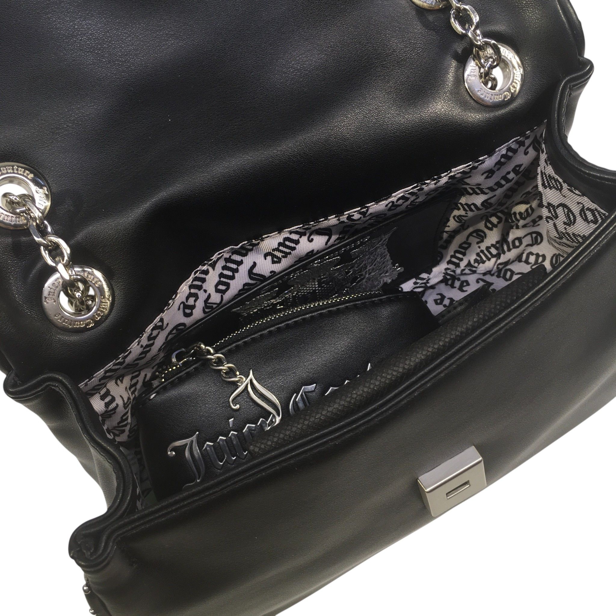 Bossa Juicy Couture mitjana de pell vegana amb solapa, tatxes platejades i tanca antirrobatori.