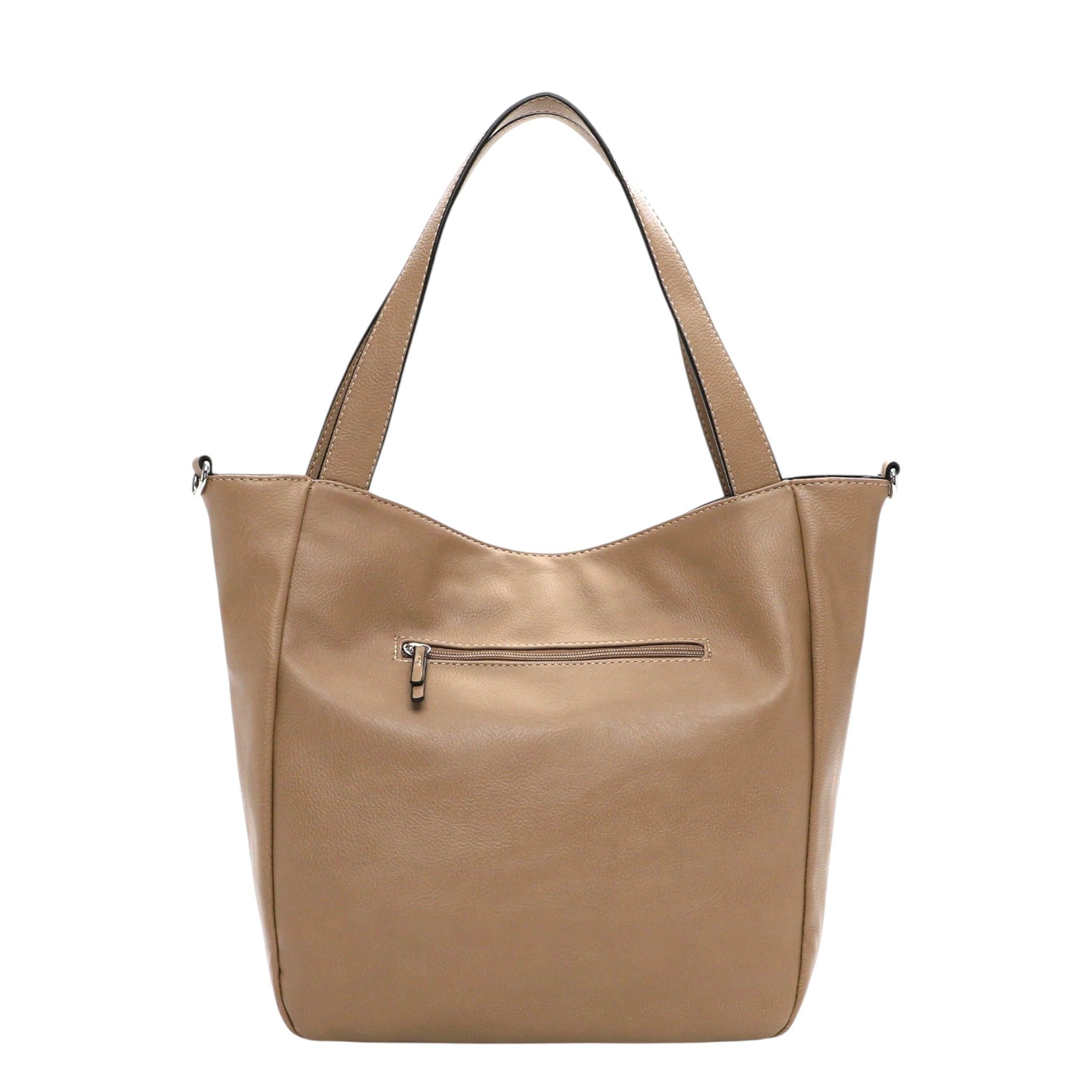 Bossa tipus totebag confeccionada amb pell vegana d’alta qualitat, molt suau al tacte i amb un acabat elegant.